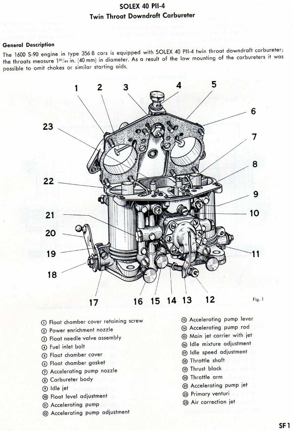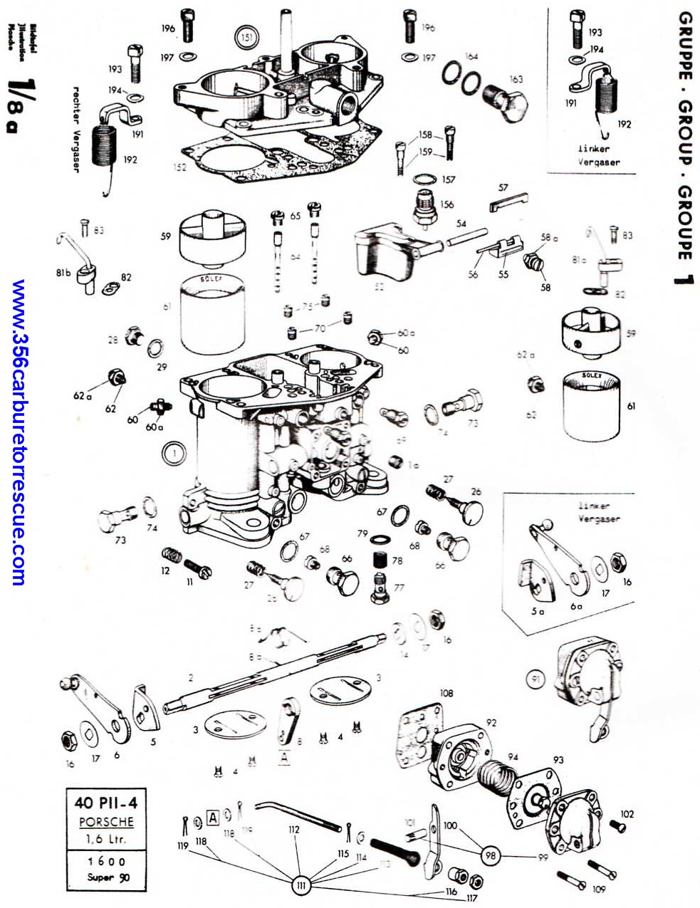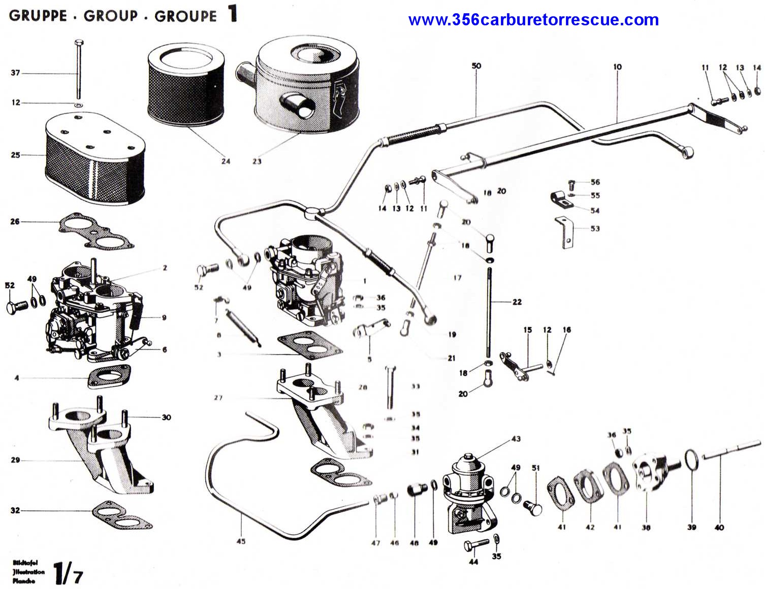 Workshop manuals, parts diagrams, and expert articles for Porsche 356 carburetor maintenance.