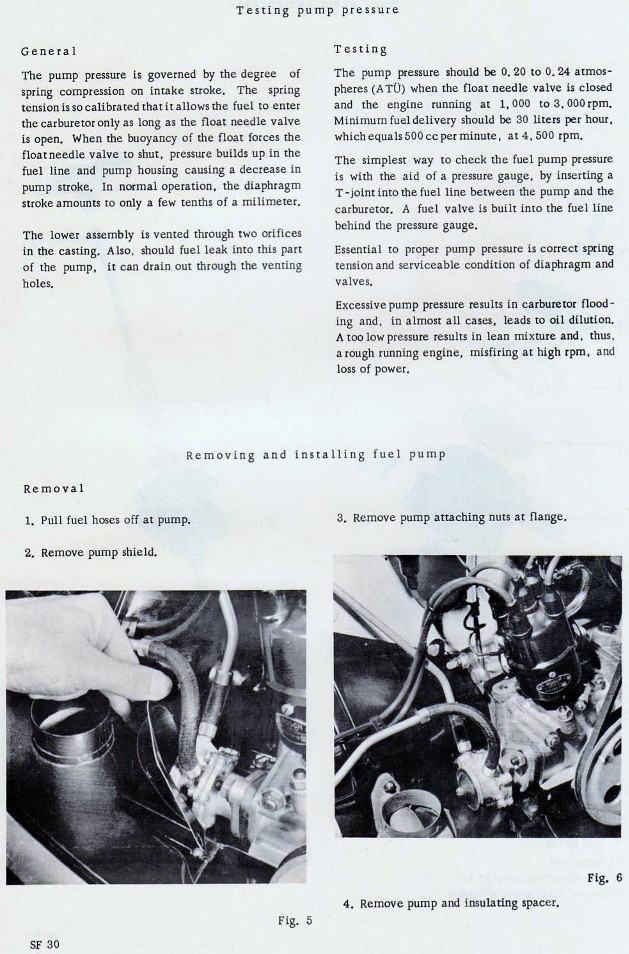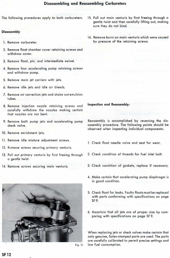Pages from the Porsche 356 Workshop Manual covering Solex carburetors and the fuel system. Click any image to view at full size.